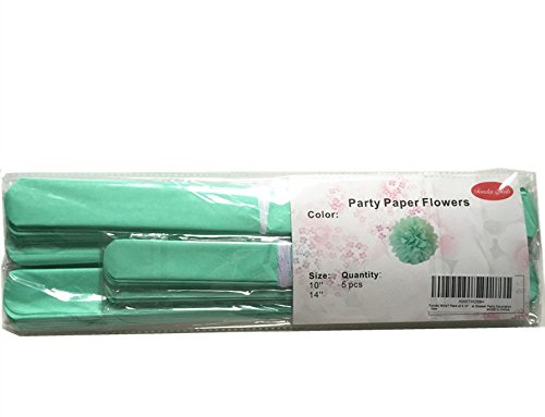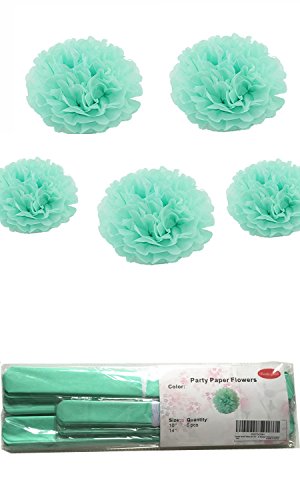 Fonder Mols® Pack of 5 10" and 14" MINT Tissue Paper Pom Poms Flower Ball Wedding Bridal Shower Party Decoration