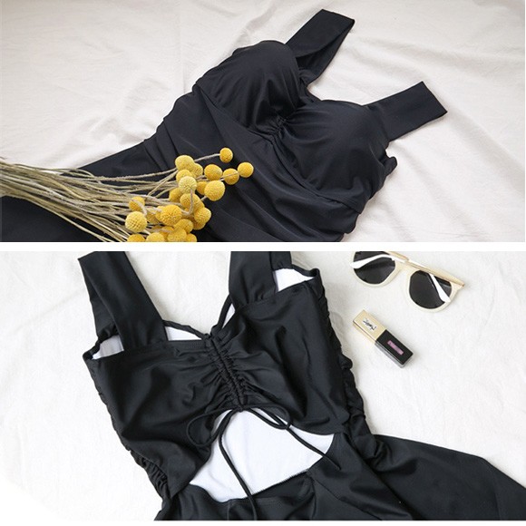 シャーリングが効いたデザイン&ブラックですっきり体型カバーしてくれます♪