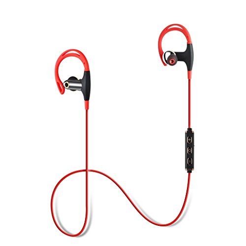 -. Feature : Bluetooth 4.1 CSR Tec for Best Stereo Sound and Superb Bass Sound. Clear high & Low Volume. Best Wireless Earbuds Sound / Built-in Micphone, volume control,next/previous,switch button.Supports Apt-X Technology / IPX4 Waterproof and sweat design! Great for Running, Jogging, Hiking, Biking, Gym and Water Sport. Stay in Ear Tech with Comfortable Ear Hook / Up To 8 HOURS Music Playing for Full Battery Charge. Super Quick charge Time with Full Charge Light Indication / Ear type sound chamber design to better fit the ear canal to make the structure more surging bass and treble clarity upgrade