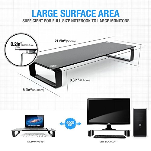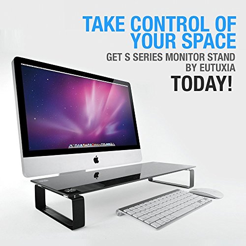 Eutuxia TYPE-S Tempered Glass Monitor Stand Riser 21.6 x 8.2 x 3.3" For Cubicles, Office Desktops