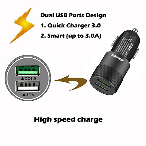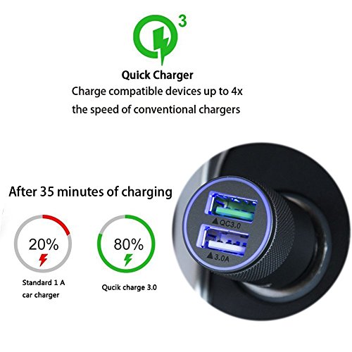 Dual USB Car Charger Quick Charge 3.0 Compatible with Galaxy S7/S6/S6 Edge, iPhone, iPad, LG G5, Nexus, HTC, Sony