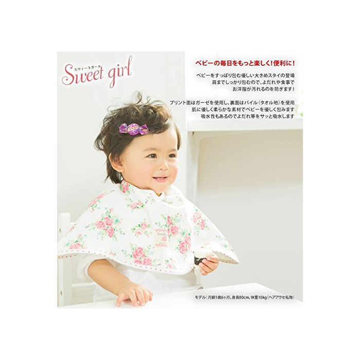 Abt (척(Chuck)《루》) chuckle *스위트 걸*큰이기 때문에 사용하기 쉽!대형 꽃무늬 로즈 스타이(유아용 턱받이)【뒤 pile 거즈】 화이트 사이즈 없음 P8599-00-10
