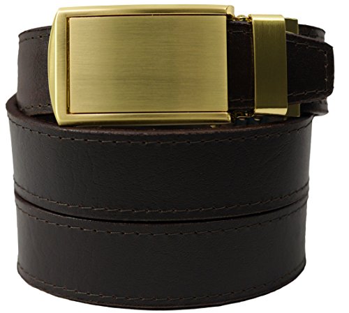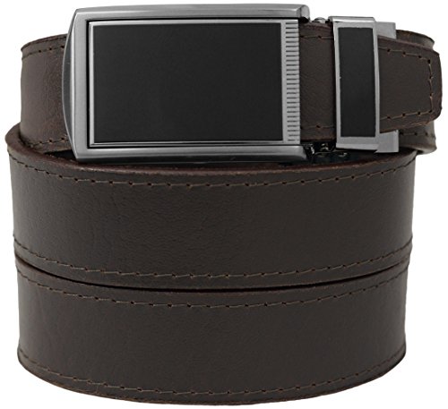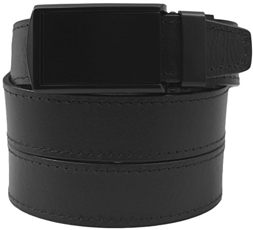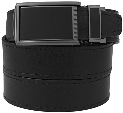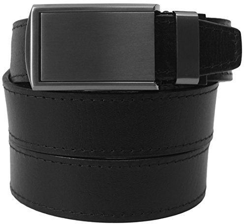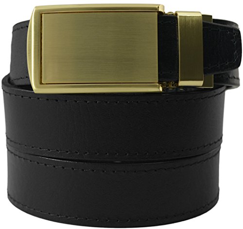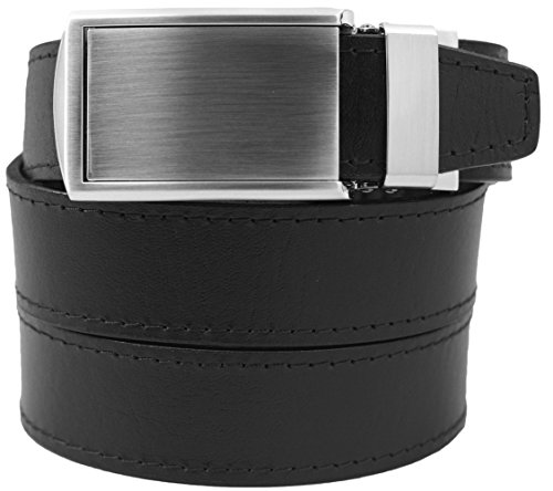 What is a SlideBelts brand ratchet belt? It's a leather belt that lets you freely adjust your belt size without the limitation of holes in the leather. In fact, there are no holes at all! A tab in the buckle catches on a row of notches sewn onto the underside of the leather, allowing for over 30 size options with 1/4" (6.35 mm) between adjustments. All SlideBelts come with a belt strap that can be trimmed to your exact waist size. The full length of one of our straps fits a 48" (122 cm) waist size. All buckles are completely removable and interchangeable with compatible SlideBelts products. Try SlideBelts out and see why there's no reason to poke holes in a perfectly good piece of leather.Feature