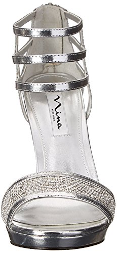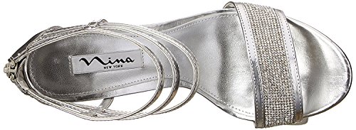 Studio : Nina Footwear Publisher : Nina Footwear Binding : Shoes Product Description Metallic faux leather upper with strapped ankle cuff and sparkling strap at vamp. Man-made lining. Lightly cushioned man-made footbed. Wrapped platform and heel. Metallic sole. Imported. 0