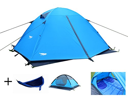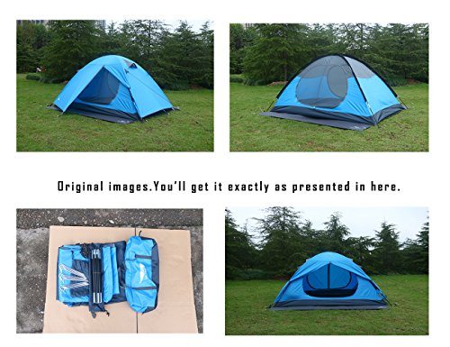 Brand:Luxe Tempo Design Type:Free standing,2 screened doors,2 vestibules Sleeping Capacity:2 person Shipping Weight:5.5LB Dimensions(in.):82.6*55.1*43.3(peak height) Vestibules Area:6.8 sq.ft 6.8sq.ft Pole Material:8.5mm Fiber Glass Rainfly Fabric:210T Rip-stop Polyester 5000mm with PU Coating Canopy Fabric:210T Breathable Polyester;No-see-um B3 mesh Floor Fabric:Taped 210T Rip-Stop Polyester with 5000mm PU coating Footprint Fabric(Sold Seperately):210T PU-coated Oxford Zipper:SBS Anti-Grit Reversed ZipOther Accessories:12pcs Aluminum stakes;4?guy-lines 0