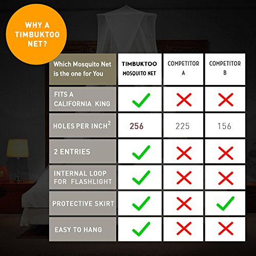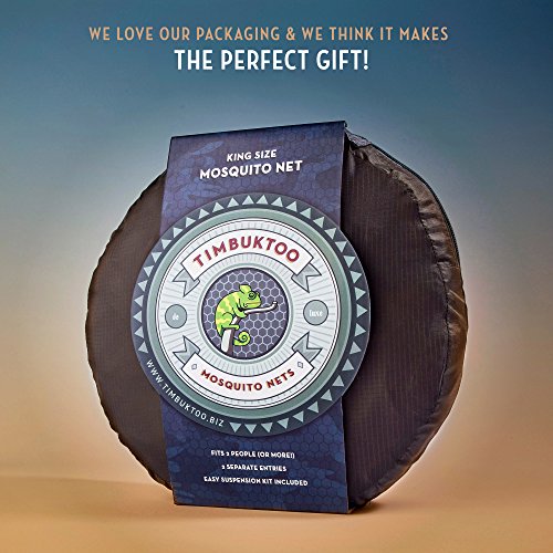 LUXURY MOSQUITO NET - for Single to King Size Beds - by Timbuktoo Mosquito Nets - Quick and Easy Installation System - Unique Internal Loop - 2 Entries - Ripstop Stuff Sack - No Added Chemicals.