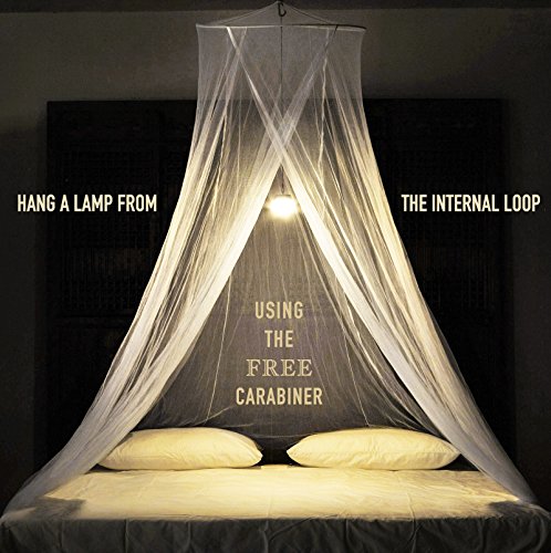 THE ONLY NET WITH AN INTERNAL LOOP - inside the netting - to hang a lamp or flashlight, so you don't have to leave the net to turn out the light (and get eaten alive). This loop is also essential if you want to hang a baby's mobile inside the net. There's a free carabiner to use with the loop.