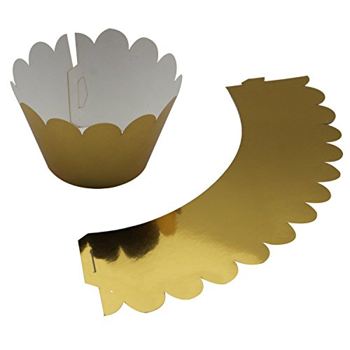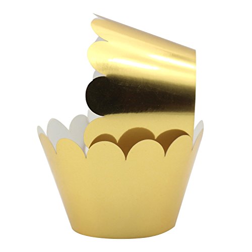 KEIVA Set of 100 Artistic Bake Cake Cups Filigree Little Vine Lace Laser Cut Cupcake Wrapper Liner Baking Cup Muffin CaseTrays for Wedding Birthday Party Decoration-Best Kitchen Gift (Mirror Gold)