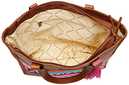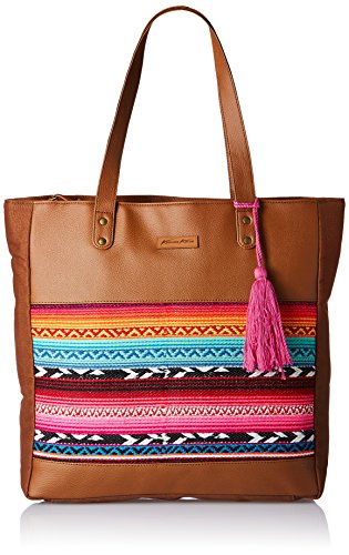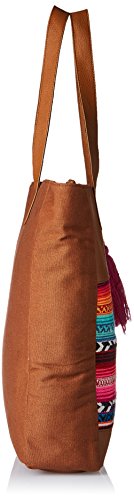 Handloom Jacquard weave & faux leather Women's vertical Handbag/Totebag with fancy tassel, One Size Kanvas Katha