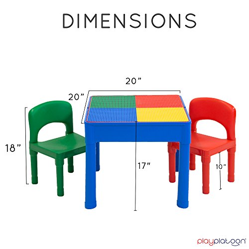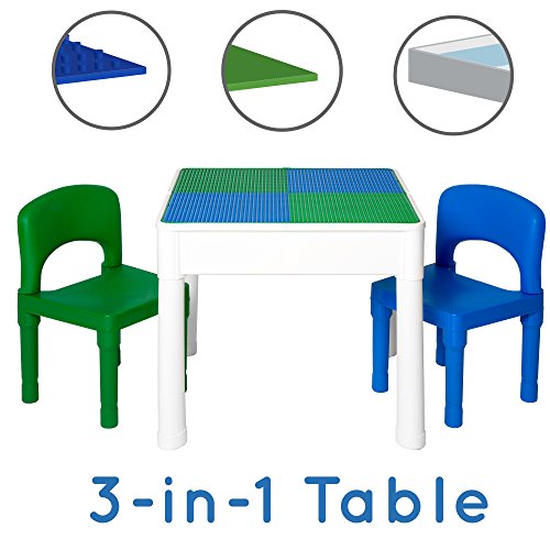 This 3 in 1 Kids Activity Table Set was designed to inspire creativity and grow with your child. The inside makes a great water table for hours of fun and doubles as a storage space for building bricks and other toys. The Building Brick surface provides a surface on which your child can build fun, imaginative worlds. And the smooth side is the perfect place to make crafts, draw masterpieces, and more!