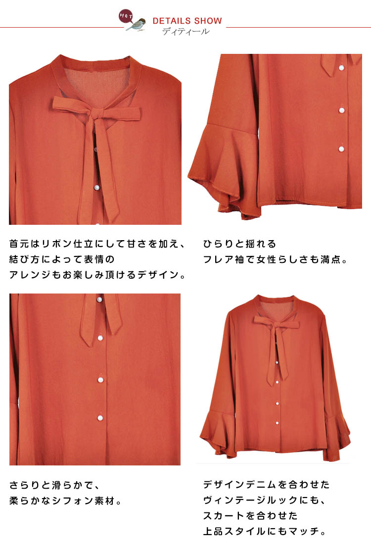| 袖口にフリルをあしらった、上品なレディースブラウスです。ほんのりクラシカルな雰囲気で、女性らしさを感じるデザイン。程よいゆるシルエで、ふわっと体系カバーしてくれて落ち感もキレイ★しなやかな質感で着心地がよく大人っぽさを醸し出す素材を使用。軽量でライトな質感は暑い季節も重たくならずにスッキリと着られます。 | |