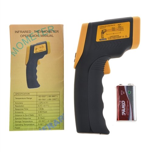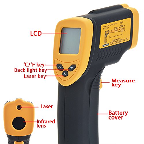 ABLEGRID 8380 Non-contact Digital Laser IR Infrared Thermometer Temperature Gun Yellow and Black