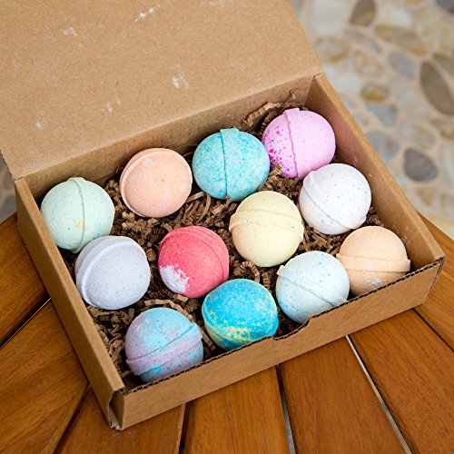 -. Feature : THERAPEUTIC & RELAXING: Feel the calming effects of a spa worthy bath. Treat yourself to a relaxing bath that is accompanied by therapeutic fragrances and a soothing feel. / MOISTURIZES YOUR SKIN: Quench your skins thirst and immerse yourself in a bath tub filled with moisturizing essentials that leave your skin feeling hydrated and smooth. / MAKES THE PERFECT GIFT: Show someone special how much you care. Give them a gift that brings pleasure and peace into their home with this all natural bath bomb gift set. / 12 UNIQUE SCENTS: The 2 ounce bath bombs come in sense-tingling smells, including Sweet Dreams, Strawberries & Cream, Green Tea, Lacey Love, Love, Sparkling, SP.R.Ing Breeze, Afternoon Rain, Tango Island, Hawaiian Massage, Fresh Citrus and Spa Fantasy