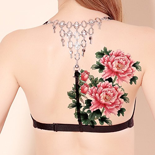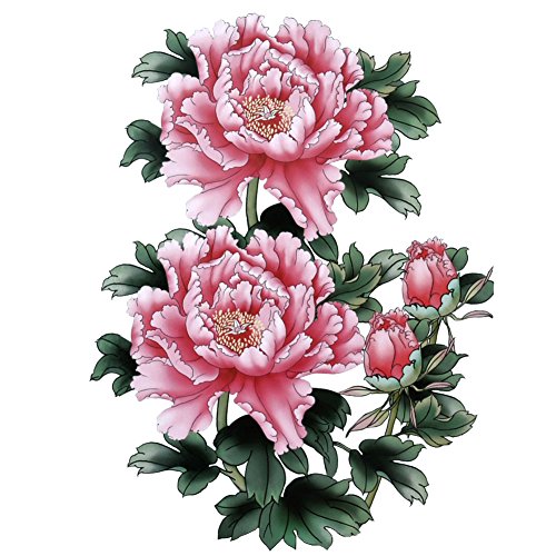 TAFLY Tree Peony Pink Flower Larger Body Back Fake Temporary Tattoo Sticker 2 Sheets