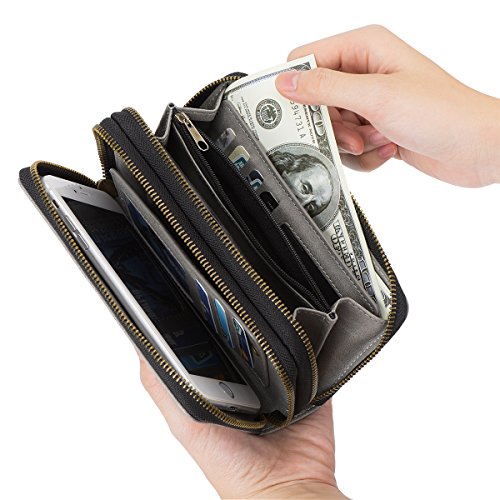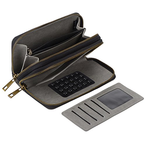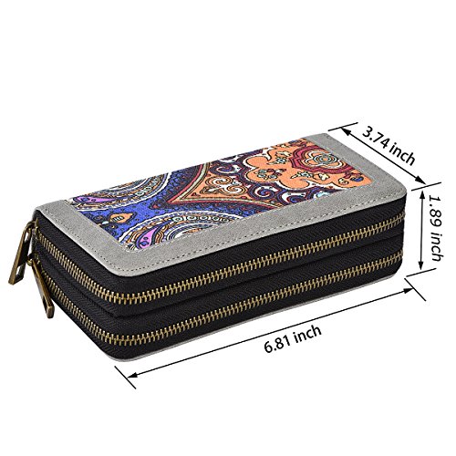 Binding : Apparel Product Description Te-Rich Womens Wallet Canvas Zipper Purse Long Clutch Handbag Card Holder Case with Mirror and Suction Cup for Cell Phones