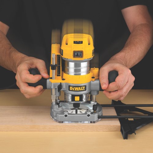 - Feature : Durable 1.25hp motor delivers the power to meet the toughest applications / Variable speed control feature enables bit speed to be optimized for changing applications / Soft-starting motor features full-time electronic feedback that maintains motor speed through the cut / Dual LED's and clear sub-base ensure maximum visibility in operation / Adjustment ring enables controlled bit depth changes to within 1/64-inch (fixed base only)