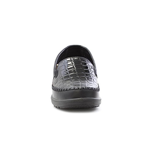 (Cushion Walk)/Women's/Flats/DIRECT FROM USA/Cushion Walk Womens Black Croc Patent Slip On Shoe - Size 5 UK/7 US - Black