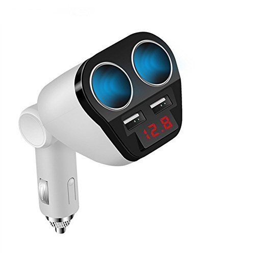 -. Feature : I: DUAL USB CAR CHARGER : 2 USB charging ports with total Max 5V/3.4A output current enables you to rapidly charge multiple service simultaneously such as tablets or phones. / II: 2-SOCKET CAR SPLITTER: Convert and increase your car cigarette lighter from 1 to 2 sockets, max 120W power output, it can supply power for 2 devices at the same time such as GPS, DVR, Dash Cam, car vacuum cleaner and other car electric appliances. / III: SAFETY ASSURENCE: Built-in protective circuits and high quality components prevent the product or your devices from overheating or overloading. Support anti-interference function, adopt high frequency and low resistance capacitance with low ripple, it will not interfere the navigation and other electronic devices. / IV: WIRELESS and COMPACT DESIGN: Different from other car cup chargers, just plug and play with no more extra wires. This car lighter USB charger is compact and flexible neck design for more convenience activities in car. / V: VOLTAGE MONITOR and ATMOSPHERE LIGHT: Digital LED display shows your car's battery voltage, two embedded blue LED lights make it easy to find something in the dark.