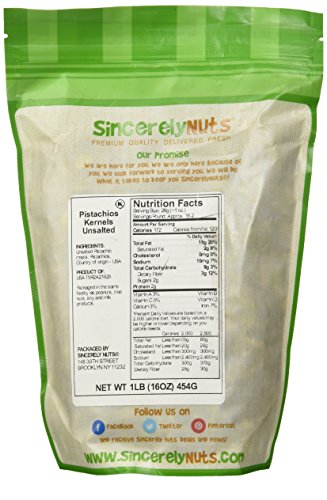 Sincerely Nuts Pistachios Roasted & Unsalted Kernels (No Shell) - One Lb. Bag - Irresistibly Delish and Crunchy - Bursting with Antioxidants - Kosher