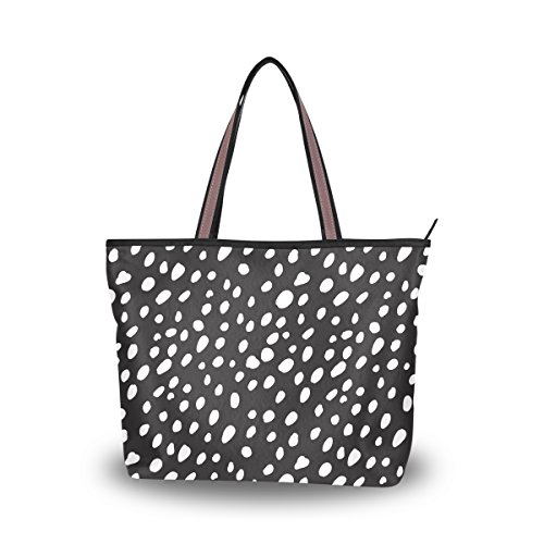 -. Title : JSTEL Women Large Tote Top Handle Shoulder Bags Black And White Dots Patern Ladies Handbag