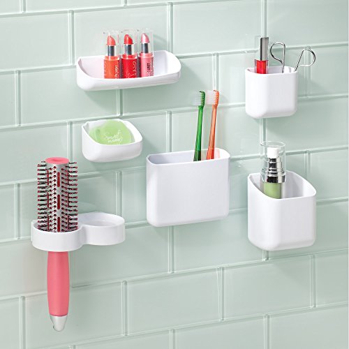 InterDesign AFFIXX, Peel and Stick Strong Self-Adhesive Organizer Tray for Cosmetics, Office, Laundry Room, Locker Storage - White
