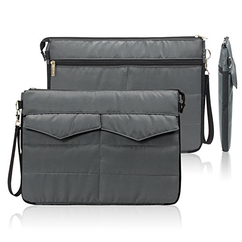 High quality zipper can be easily closed, keeping your favorite device snug and secure inside without falling out. Design of detachable webbing strap allows to be carried like a clutch. Can be carried alone or slide into your backpack, briefcase or other bags while you are on the go. Grey color oozes elegance and all-matches every outfit when you go to school, work or travel.