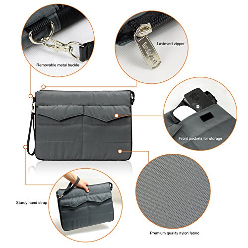 Lavievert 11-11.6 Inch Macbook Bag Laptop Sleeve Carrying Netbook Protector Case Cover with Front and Back Pockets for Most Popular 11” Notebook Computer Chromebook Laptop Ultrabook Tablet - Gray