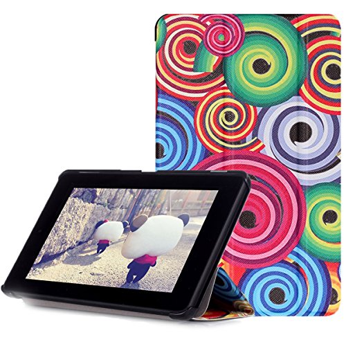 -. Feature : Specially designed for Fire 7" Display 5th Generation - 2015 release Only.(Not Fit For Fire HD 7 4th Gen 2014 release or any other Kindle Fire tablets) / Slim lightweight durable protective hardback with premium quality PU leather. Soft scratch-free microfiber interior adds comfort and an additional layer of protection. / Hard shell back cover offers great protection against dropoff, slip; Soft microfiber interior to prevent scratches and dust to the screen. / Built-in stand with several angles: perfect whenever you type an email or watch a movie. / Accurate openings will not affect any key operations and basic functions, such as synchronous, charging, headphones etc.