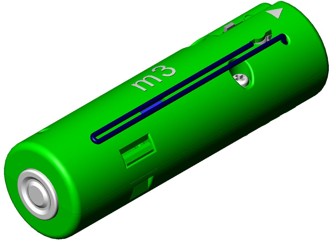 · The cylindrical "new m3 engine" can be used repeatedly 300 times, with a built-in rechargeable battery (GP17).
