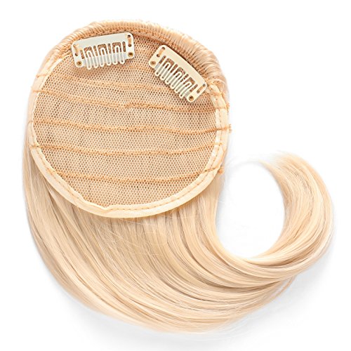 OneDorSide Swept Clip in Clip on Hair Bang Hair Extension Hair Piece (613#-Pre Bleach Blonde)