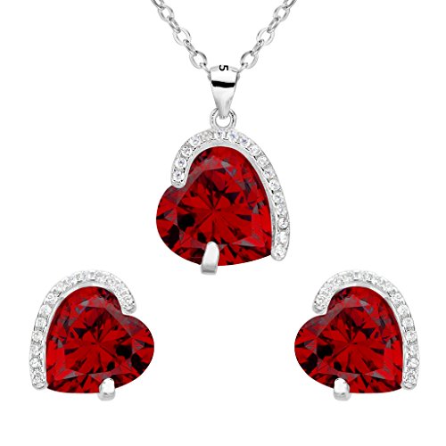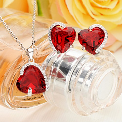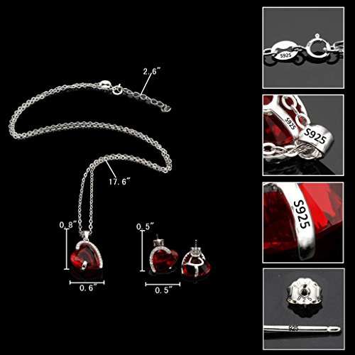 -. Title : EleQueen 925 Sterling Silver Full Cubic Zirconia Eternal Love Heart Bridal Pendant Necklace Stud Earrings Set Ruby Color