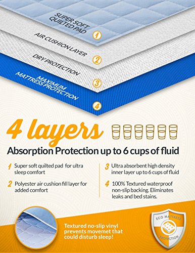 -. Binding : Health and Beauty -. Brand : Zero Waste Moving -. Color : Light Blue -. EAN : 0616806564181 -. Feature : Premium Mattress Pad-Keeps sheets dry all night with four layers of protection / Four layer protection: soft quilted cotton/polyester surface, soft polyester fiberfill layer, super absorbent high density inner layer, and a vinyl waterproof non slip barrier / 36" long by 36" wide to provide maximum protection; Absorbs quickly and locks in moisture for the best in skin care up to 6 cups / Goes over the bottom sheet to protect mattress and sheets from moisture and staining / Up to 100 Washes- Washer and Dryer friendly and bleachable! -. IsAdultProduct : 0 -. Label : Zero Waste Moving -. Manufacturer : Zero Waste Moving -. MPN : Blue 36 x 36 -. PackageQuantity : 1 -. PartNumber : Blue 36 x 36 -. ProductGroup : Health and Beauty -. ProductTypeName : HEALTH_PERSONAL_CARE -. Publisher : Zero Waste Moving -. Size : 36 Inches X 36 Inches -. Studio : Zero Waste Moving -. Title : Premium Mattress Protector For Bed Wetting and Incontinence. 4 Layers of Protection. Silent-NO NOISE comfort. Winner of 2 Medical Product Awards -. UPC : 616806564181