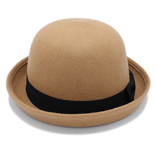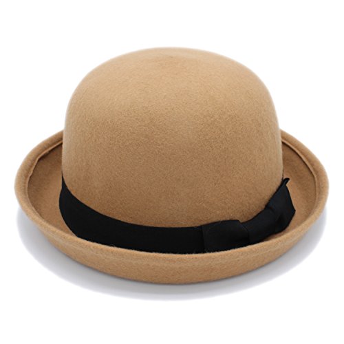 Women Wool Roll-up Brim Fedora Bow Cloche Hat