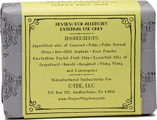 - Ingredients include Saponified oils of Coconut, Palm, Palm Kernel, Olive, and Non GMO Soybean, Australian Pastel Pink Clay, Rose Powder and Essential Oils of Grapefruit, Neroli, Bergamot, Ylang Ylang, and Lemongrass