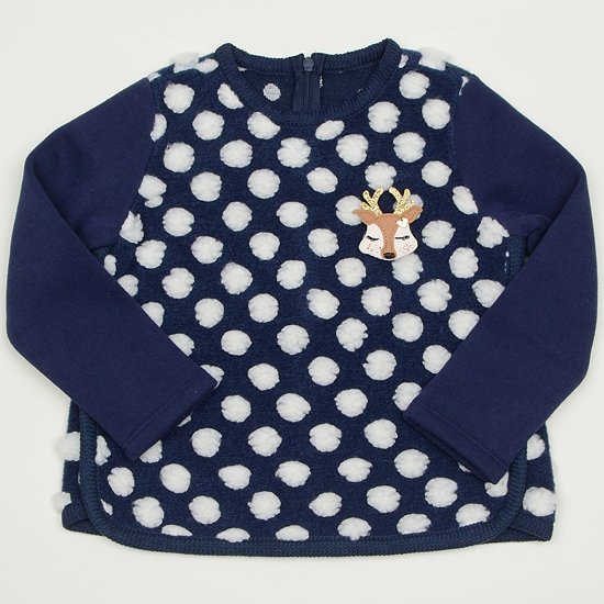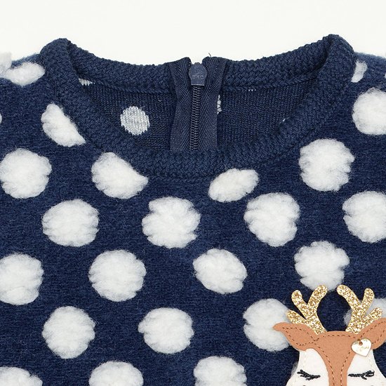 소매부분은 다이마루 기모 소재로 편안하게 활동이 가능하며, 뒷판에 지퍼가 있어서 입고 벗기에 좋습니다. 가슴에 사슴 브롯치가 큐트함을 더해줍니다.