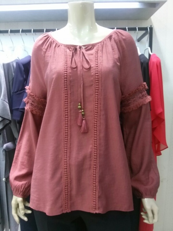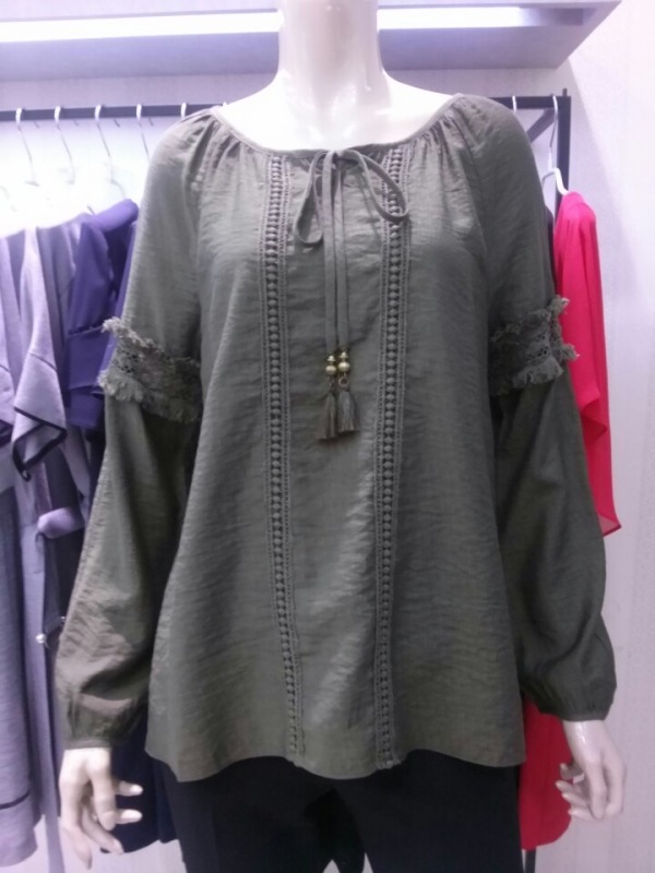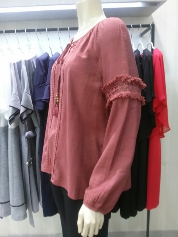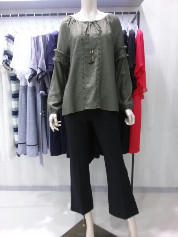 가을하고 너무 잘 어울리는.. 카키,브릭 두컬러로 준비한 수술레이스장식 솔리드 블라우스^^