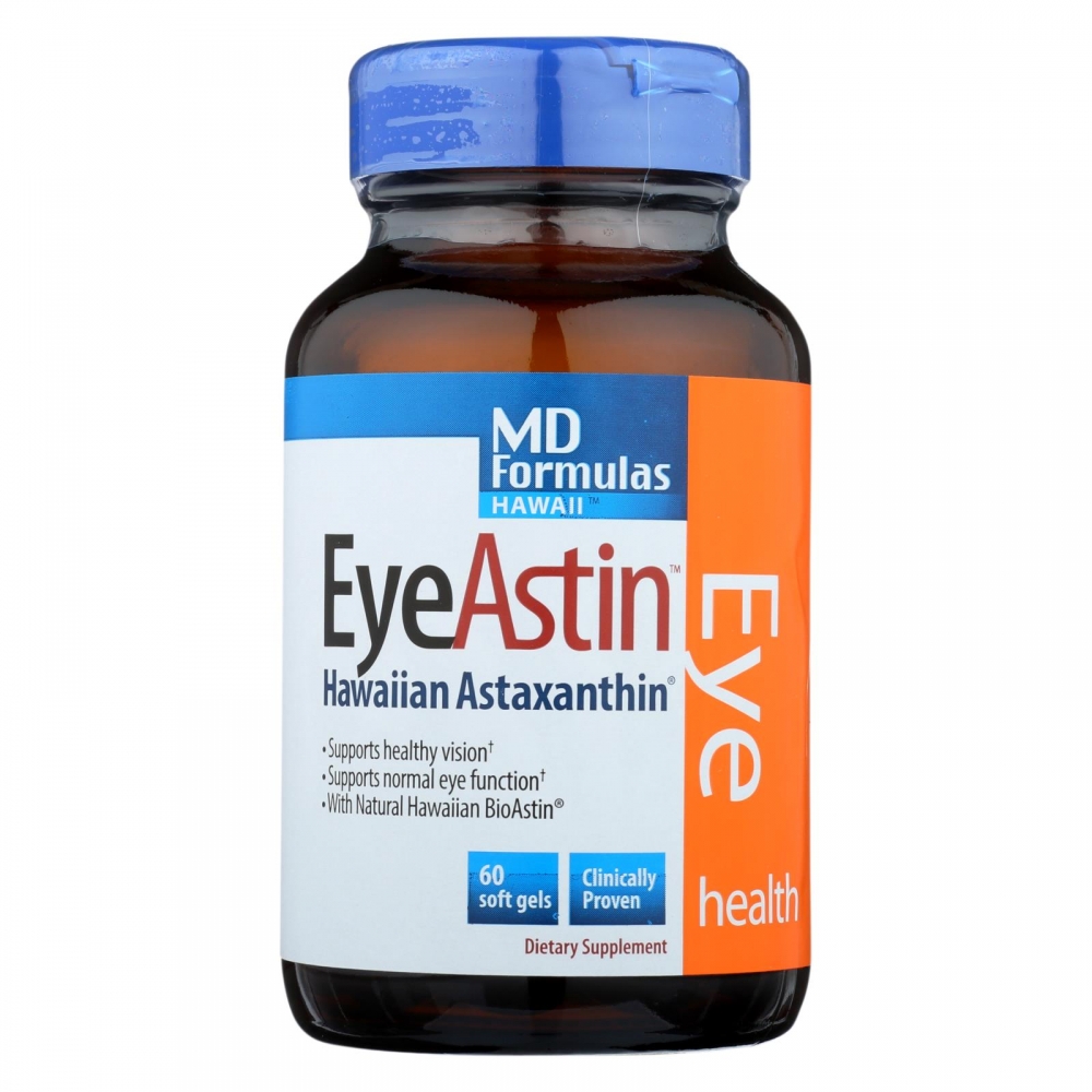 | Nutrex Hawaii MD Formulas EyeAstin Description: With Pure Natural Astaxanthin Supports Healthy Vision Enhances Eye Function With Natural BioAstin Vegetarian EyeAstin combines BioAstin, our pure Hawaiian Astaxanthin, the most powerful natural antioxidant known, with Lutein, Zeaxanthin and Billberry. Formulated by Dr. Robert Corish MD, EyeAstin has superior anti0inflammatory properties and eye health benefits to help support and enhance eye function, improve night vision, reduce eye fatigue and strain. Free Of Gluten, lactose, preservatives, solvents, and animal ingredients. Disclaimer These statements have not been evaluated by the FDA. These products are not intended to diagnose, treat, cure, or prevent any disease. Size : 60 VCAP Pack of : 1 Product Selling Unit : each |