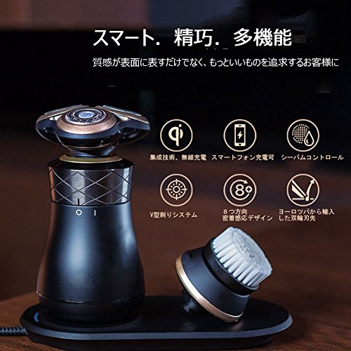 원본상품명: Aseech 電動メンズシェ?バ? 復古版 IPX7級防水3枚刃 スマ?ト.精巧.多機能 V型剃り、密着感?、?輪刃先システム 2時間急速充電 お風呂剃り可 洗顔ブラシ付? Qi無線、USB充電 ブラ