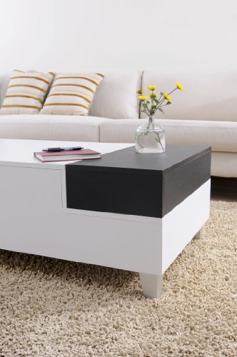 - Feature : Rectangular coffee table in white finish with removable display black tray / Product made of medium fiber board construction; laminate white finish coffee table; display tray finished in laminate black finish / Box style design coffee table; removable storage tray; furniture can be used as a media console / Assembly required by two adults; To clean, use damp cotton cloth to wipe clean; Made in Taiwan / Measures 37.48-inch wide by 37.48-inch deep by 17.09-inch high; 30-days hassle-free replacement parts warranty
