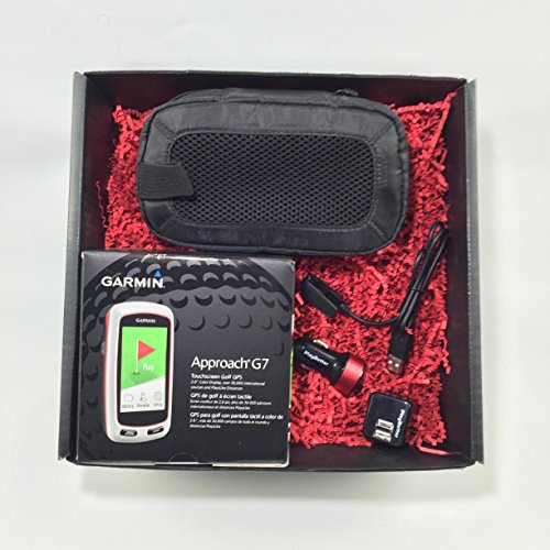 Gift Box includes: Garmin Approach G7 Handheld Golf GPS, USB Charging Cable, A/C Wall Charger, Garmin Carrying Case & Dual USB Car Charge Adapter (all in a black gift box with red crinkle paper filler, and a red bow!)