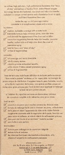 An oil-free, high definition, high performance foundation that "stays all day" and delivers a flawless finish. Unique oxygen technology leaves skin hydrated, nourished and helps prevent premature aging. This foundation glides onto skin, immediately going to work to help minimize skin blemishes and imperfections. This dreamy formula glides onto skin and immediately goes to work to help minimize skin blemishes and imperfection. It is also enriched with an array of skin loving ingredients, and unlike other long-wearing formulas, includes a synergistic combination of botanical extracts that have been shown to help enhance circulation and blood flow, resulting in an increase of oxygen being delivered to the skin and letting skin breathe. These innovative extracts also help to slow down the onset of premature aging and promote healthy, hydrated and vibrant skin. This multi-tasker also contains a creamy, full coverage concealer cleverly hidden inside the cap (along with a handy mirror) that instantly hides blemishes, dark circles and age spots creating an impeccable canvas for flawless makeup application. Product also comes with a spatula and brush for ease of application.Feature