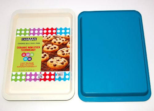 casaWare Ceramic Coated NonStick Cookie/Jelly Roll Pan (9 X 12.5-Inch, Cream/Blue)