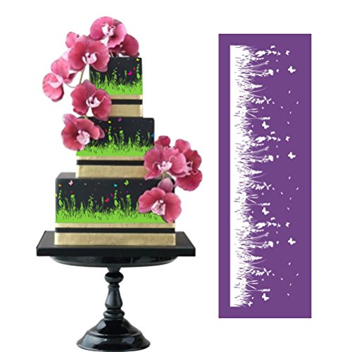 ART Kitchenware 19.3"×6.3" Large Wisteria Flower Mesh Stencil Rose Flower Cake Stencil Cake Side Stencils Template Mold Cake Decorating Bakery Tool MST-08 Purple Color