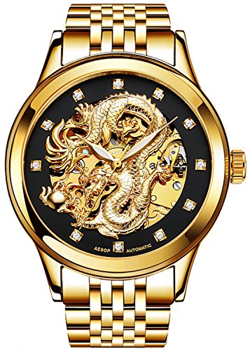 PASOY【드래곤 콜렉션】맨즈 아날로그 손목시계 스켈리턴 기계식 오토메틱