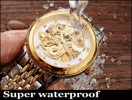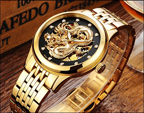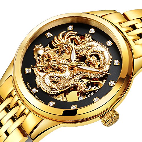 금 도금을 호화에 사용해,고급감을 어필하면서,다이얼(문자판)에는 화려하게 용을 잘게 썰어 붐볐다, 호쾌한 디자인 스켈리턴 워치입니다.