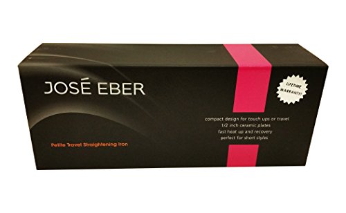 Go in style... everywhere! The Jose Eber Petite Series Flat Iron provides professional quality styling of a full size flat iron in a convenient and compact design. This small yet versatile flat iron lets you straighten, curl, or flip. Plus, it's the perfect travel companion. Toss it in your bag and go, take it to the gym, or save space at home! Great for touch ups, short hair styles, and bangs. Product Features Ergonomic design ½ " wide floating plates Compact size; 6 inches in length 360 degree swivel cord design with hook Professional length power cord Dual voltage 110-240V Max Temperature 410˚F Korean tourmaline ceramic plates Negative ion technology