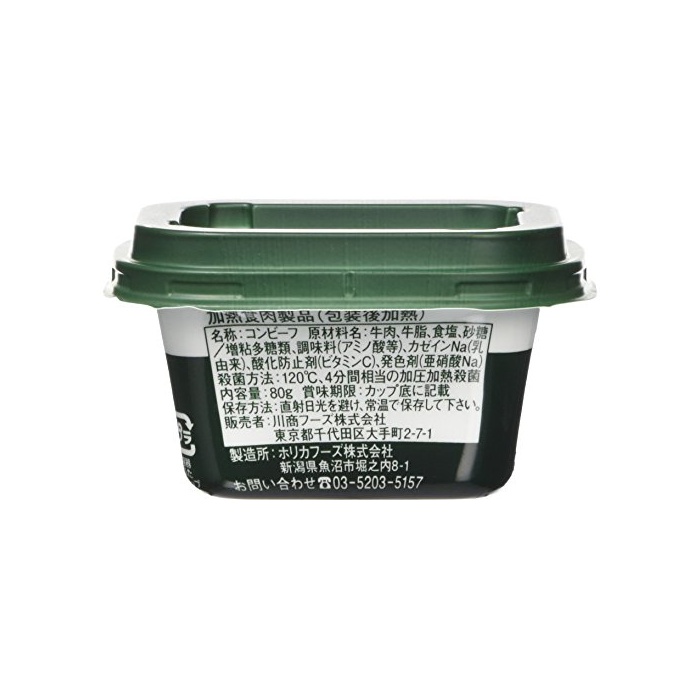 원재료:쇠고기,우기름,식염,설탕/증점다당류,조미료(아미노산등)고, (Kasein)카세인Na(유유래)고, 산화 방지제(비타민C)고, 발색 제(아질산Na)