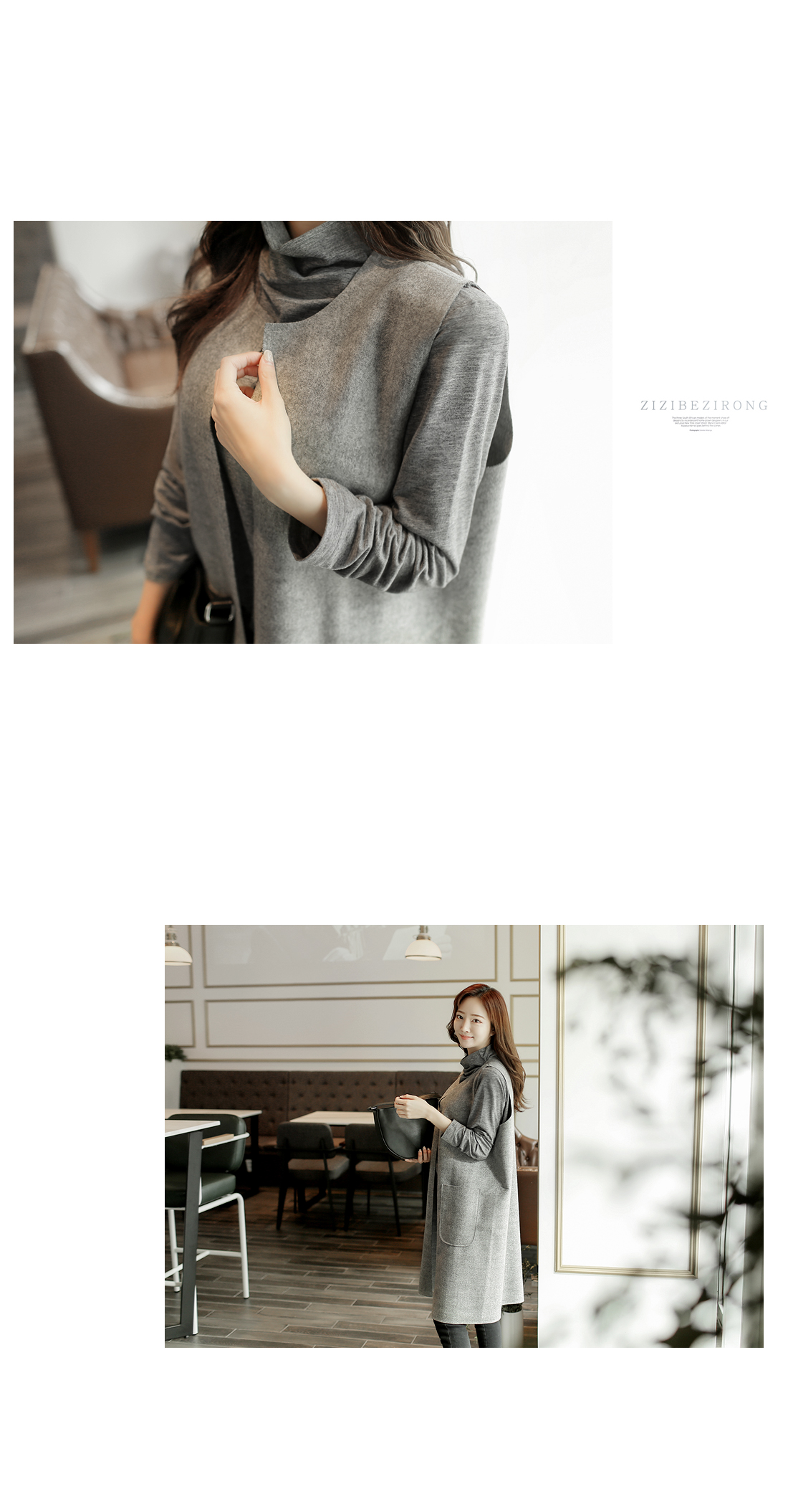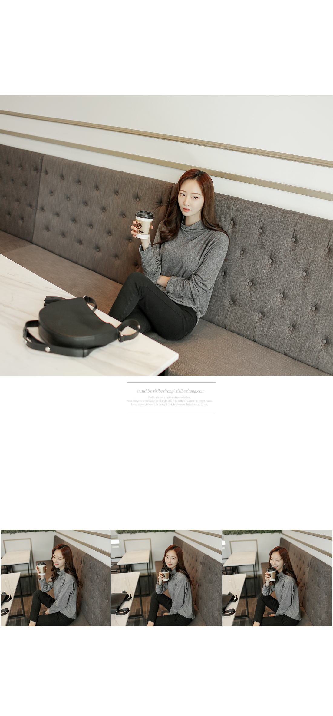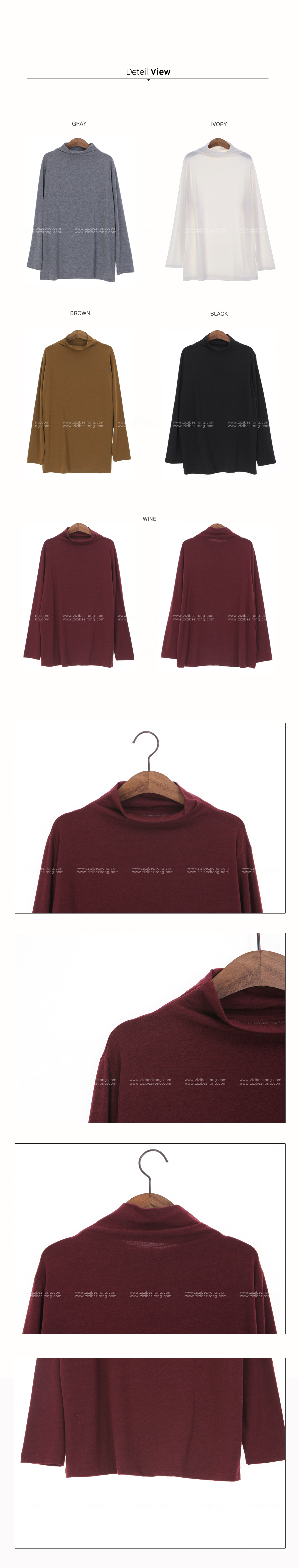 목선을 살짝 덮어주는 하이 네크라인이며,