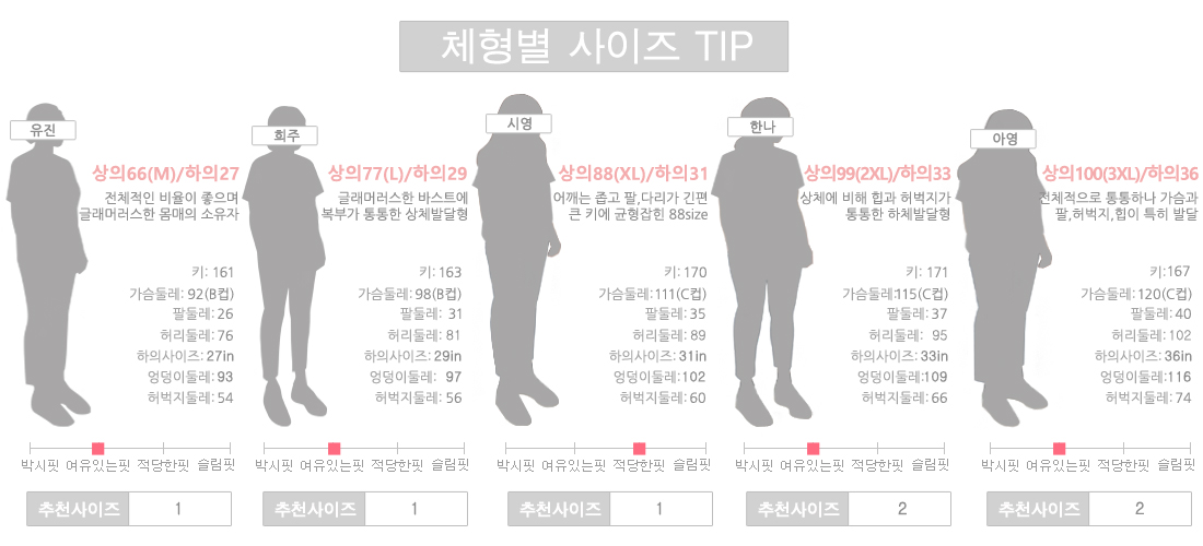 99에서 110까지 분들께는 2사이즈를 추천해 드려요.