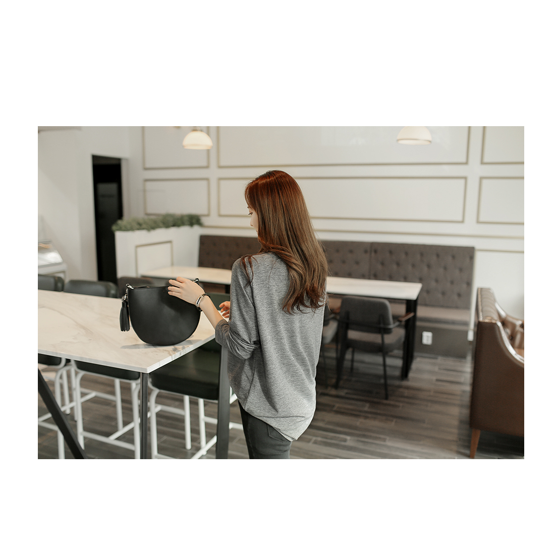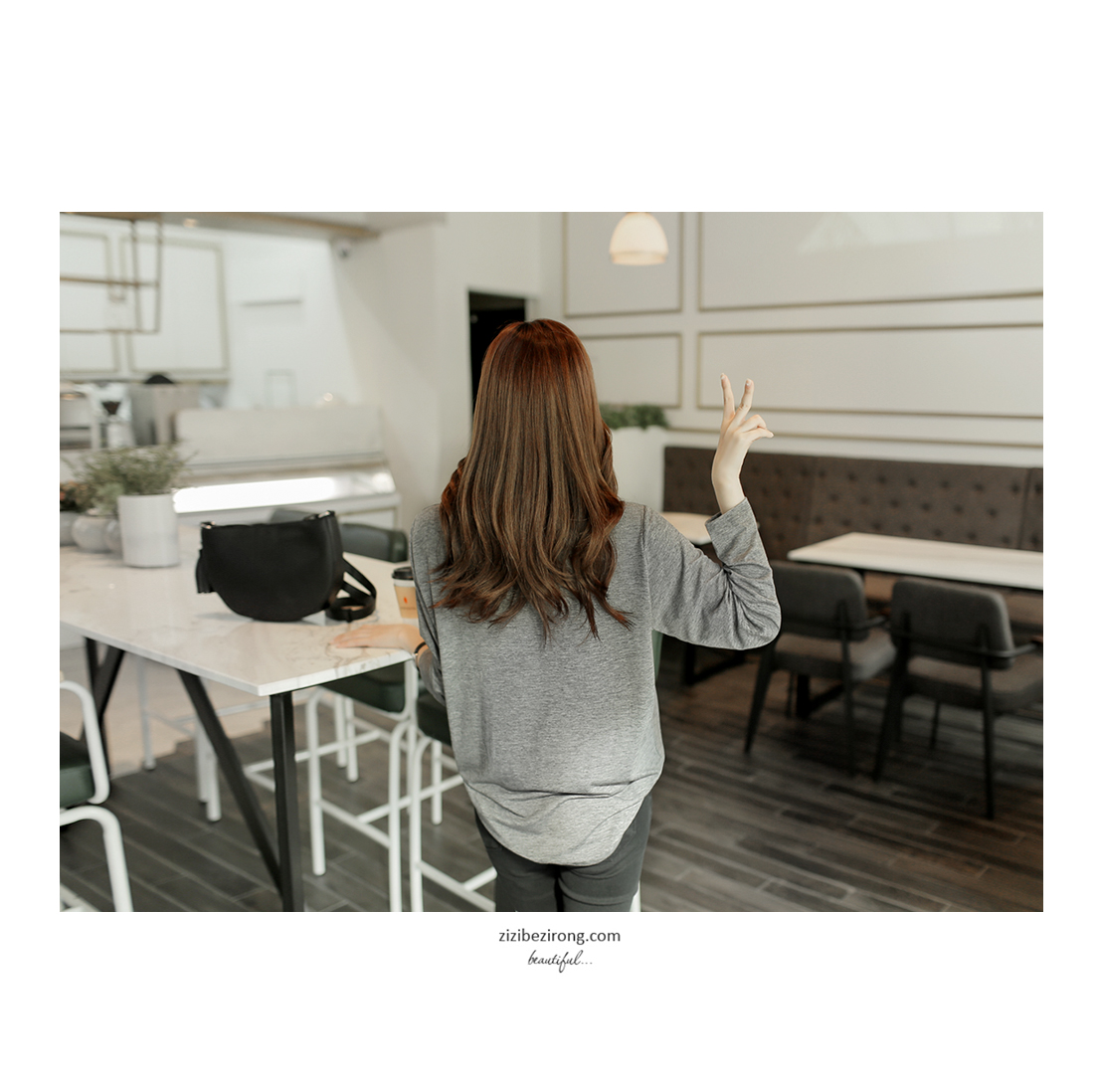 힙을 살짝 덮는 기장으로 편안하답니다.